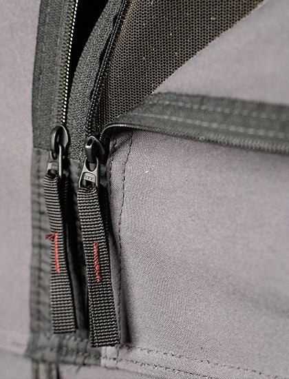 Циповете на прозорците са с подобрен дизайн, който позволява едновременното отваряне на прозорците от платно и на мрежата против комари. Балдачинул екстериор, могат да функционират и като щори.