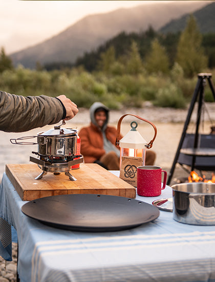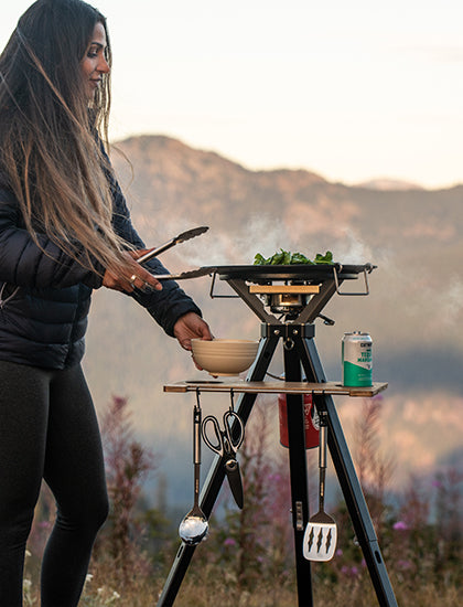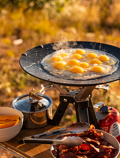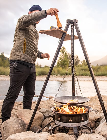 Модулен, практичен и многофункционален комплект за готвене, лек и преносим, оборудван с мощен котлон и лесна за почистване чугунена готварска повърхност. Гответе на открито, на открит огън, с система, изградена да устои.