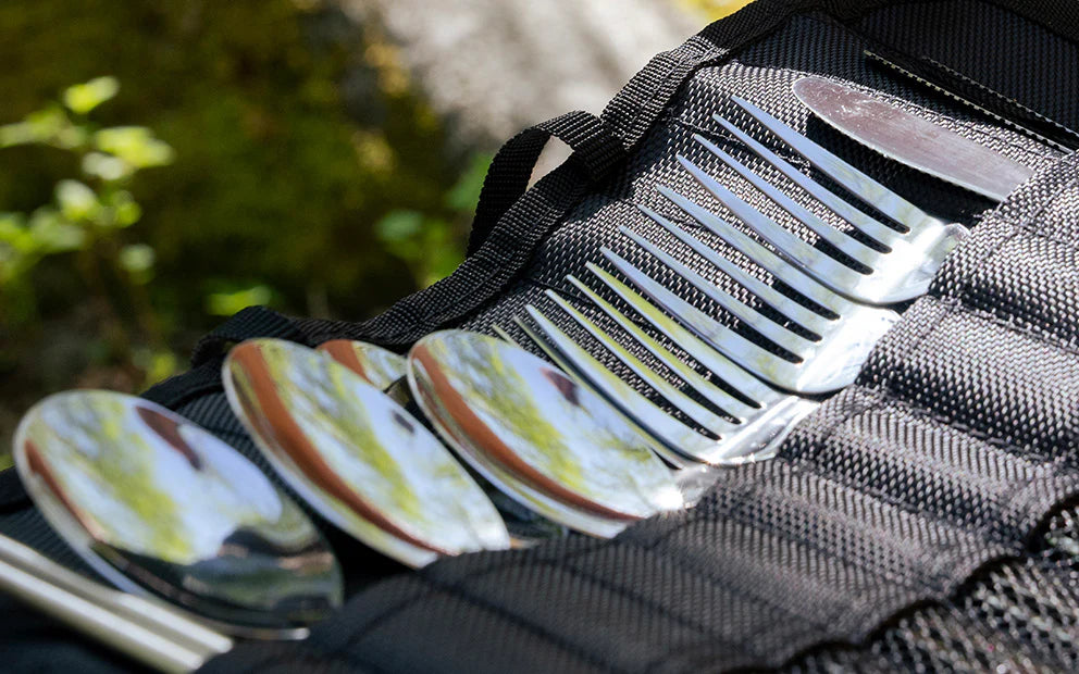 Cu o greutate de doar 0,6 kg și dimensiuni de 23 x 9 cm în stare pliată, setul de tacâmuri camping este ușor și ușor de transportat, perfect pentru aventuri în aer liber sau utilizare zilnică.