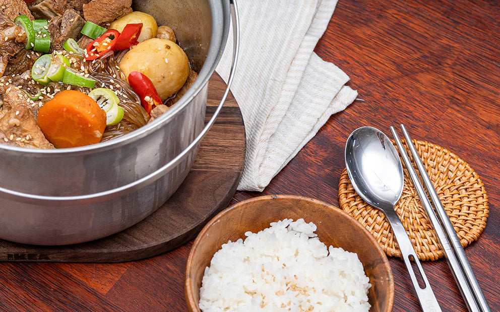 Fabricate din oțel inoxidabil rezistent la coroziune, tacâmurile își păstrează rezistența și strălucirea chiar și după o utilizare îndelungată. Se pot spăla în mașina de spălat vase pentru o curățare ușoară.